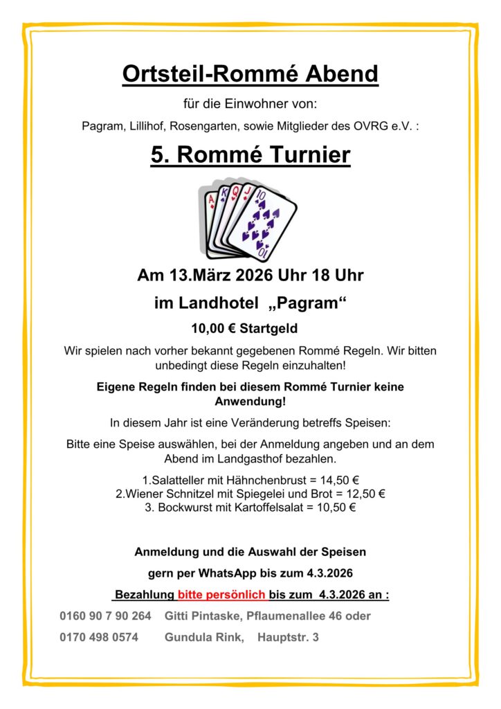 Einladung zum Romme´ Abend am 13.03.2026