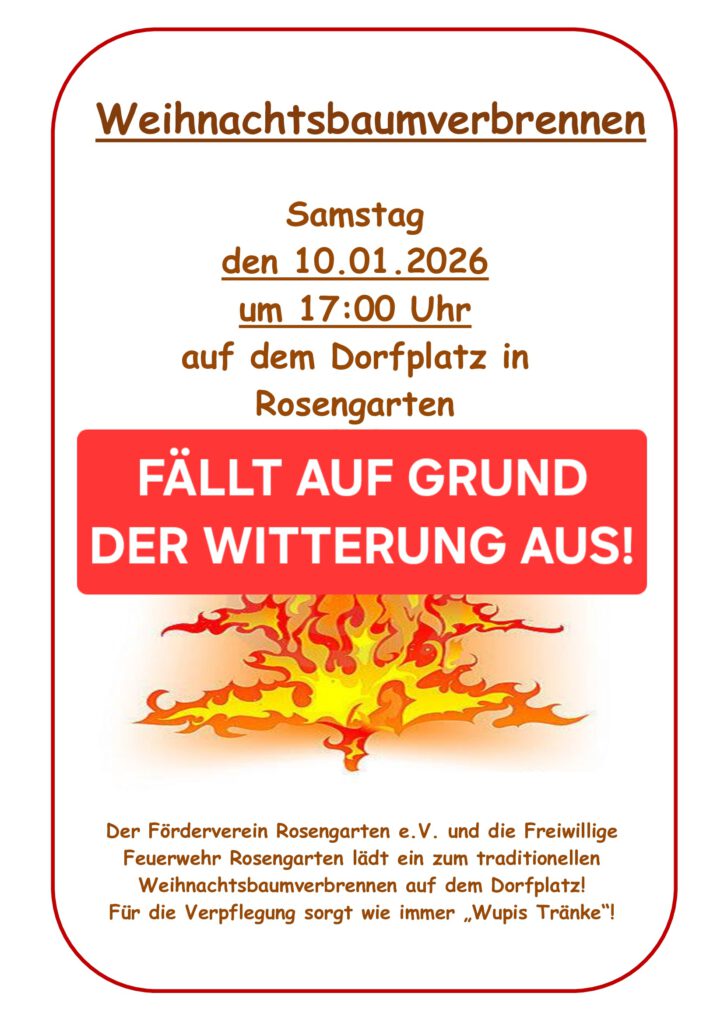 Weihnachtsbaumverbrennen am 10.01.2026 fällt aus