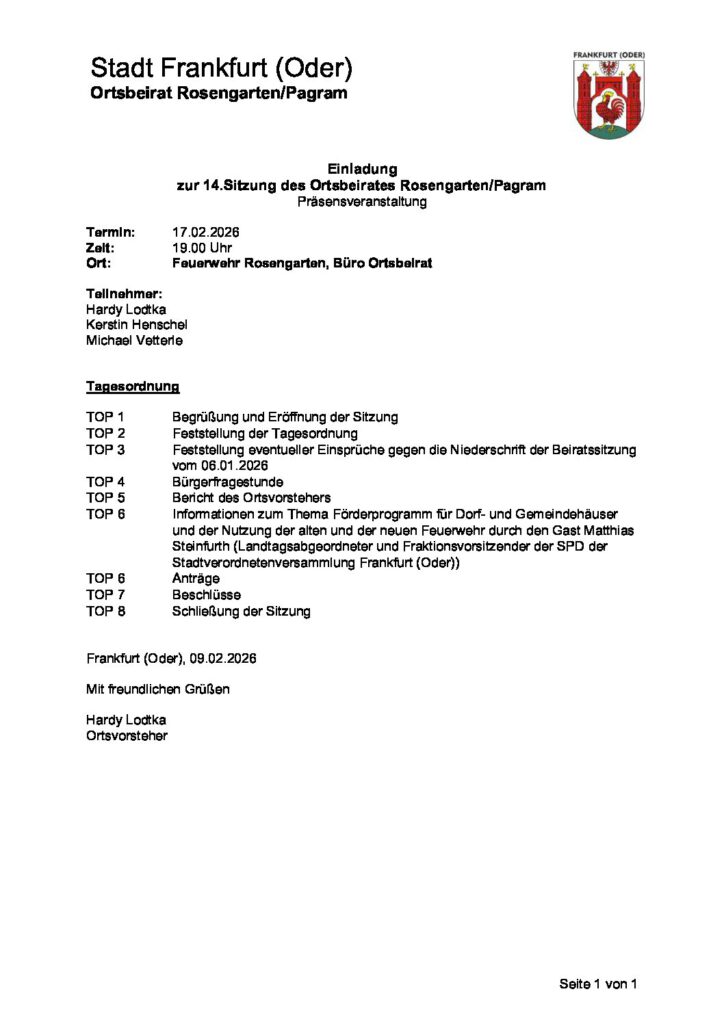 Einladung zur Ortsbeiratssitzung am Di den 17.02.2026